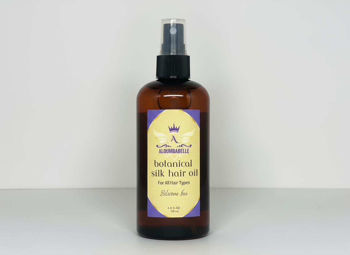 Experience the luxury of AloumbaBelle Botanical Silk Hair Oil, a silicone-free, nutrient-rich formula that delivers deep hydration, strength, and shine to your hair. Perfect for dry, damaged, or frizz-prone hair, this lightweight oil absorbs quickly without buildup, leaving your hair soft, silky, and manageable.