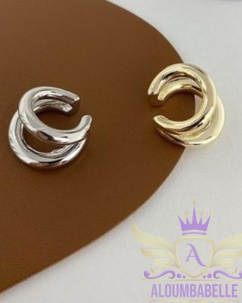 AloumbaBelle minimalist ear cuffs in gold and silver tones, no piercing needed.