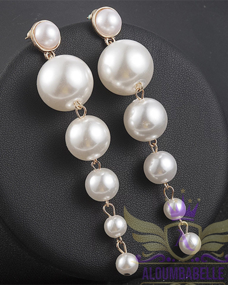 Make a statement with the Luxe Cascade Pearl Drop Earrings by AloumbaBelle. Designed with a cascade of lustrous imitation pearls, these stunning earrings bring timeless elegance and a touch of modern flair to your look.